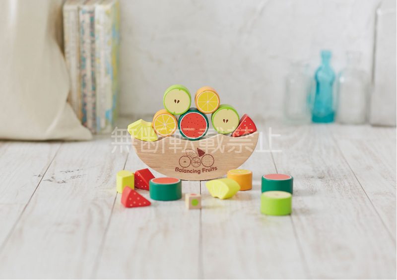【セット内容】木台×1 フルーツブロック×15 サイコロ×1