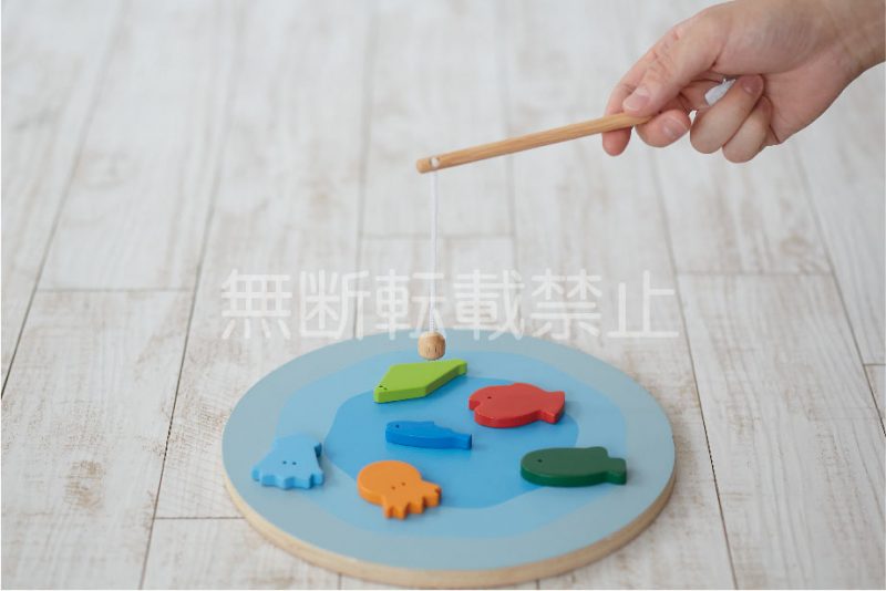 表面は型はめパズル、裏面は“海”のイラストがデザインされており、2人で釣りゲームをして遊ぶことができます。