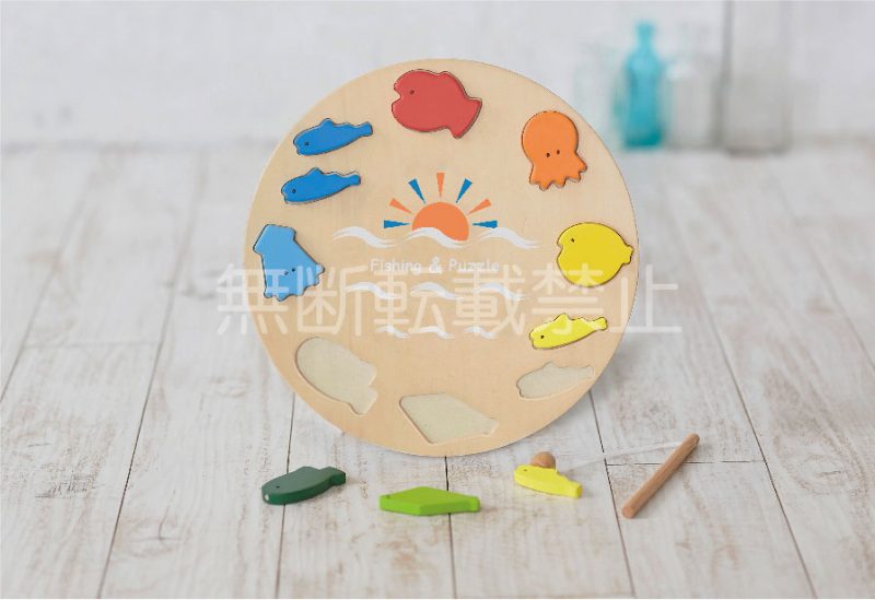 表面は型はめパズル、裏面は“海”のイラストがデザインされており、2人で釣りゲームをして遊ぶことができます。