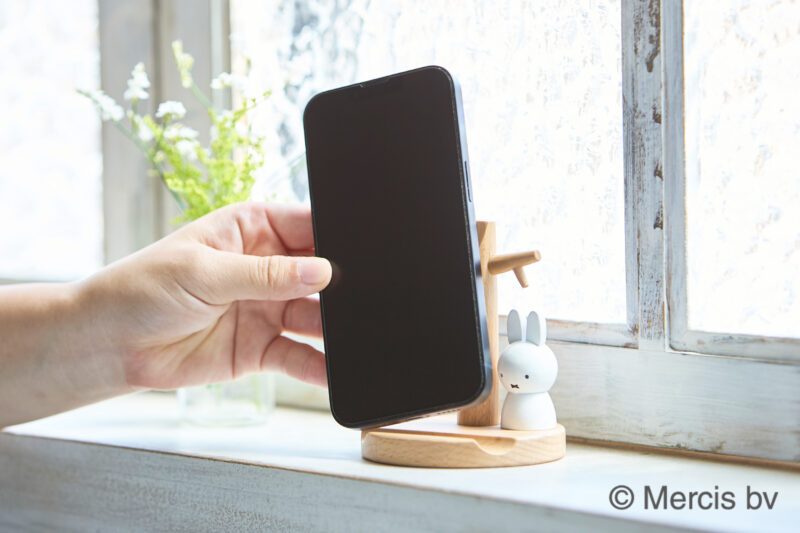 「ミッフィー ドールスマートフォンスタンド」は、ミッフィーがちょこんと乗った木製のスマートフォンスタンドです!